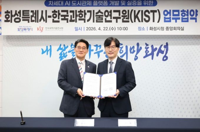 [경기경제신문] 화성특례시는 도시상태정의 기반의 AI 도시관제 체계로의 전환에 본격 착수했다. 시는 22일 한국과학기술연구원(KIST)과 ‘차세대 AI 도시관제 플랫폼 개발 및 실증’을 위한 업무협약(MOU)을 체결했다.