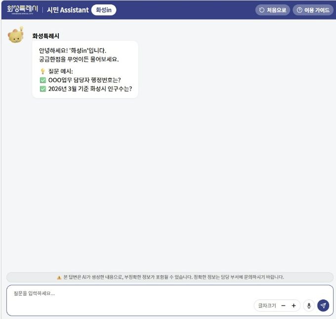 [경기경제신문] 화성특례시는 시민 체감형 행정서비스 강화를 위해 23일부터 ChatGPT 기반 대화형 AI 검색 서비스 ‘화성in’을 정식 운영한다.