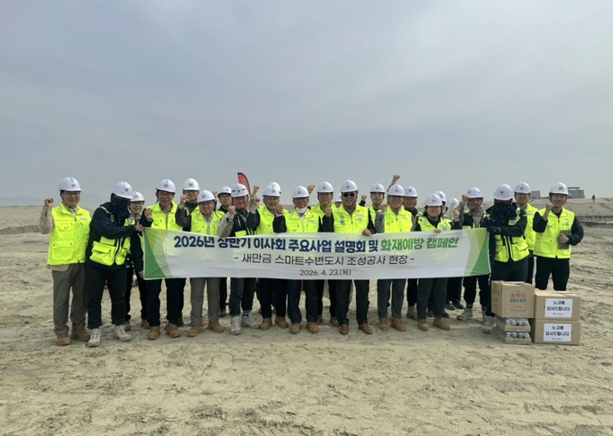 [경기경제신문] 새만금개발공사(사장 나경균, 이하 ‘공사’)는 23일 이사회 구성원 9인이 참석한 가운데 2026년 상반기 주요사업 설명회를 개최하고 새만금 스마트 수변도시 조성공사 현장을 방문했다.