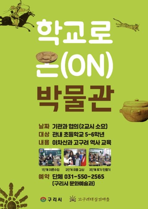[경기경제신문] 구리시는 4월 28일부터 오는 9월까지 고구려 유물 상자를 들고 관내 초등학교를 찾아가는 ‘학교로 온(ON) 박물관’프로그램을 운영한다고 밝혔다.