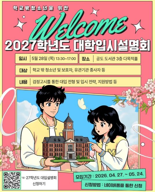 강연은 학교 밖 청소년 진로·진학 컨설팅 전문기관이 맡아, 입시 전략 수립에 실질적인 도움을 줄 수 있는 맞춤형 정보를 전달한다.