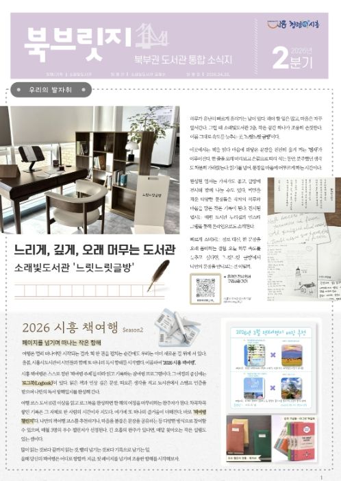 [경기경제신문] 시흥시 소래빛도서관은 북부권 공공ㆍ작은도서관의 다양한 소식을 한눈에 전하는 분기별 소식지 ‘북브릿지(북부릿지)’ 2026년 2분기호를 발행했다.