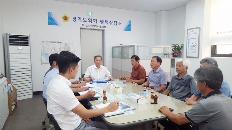 【경기경제신문】경기도 평택 상담소에서 오명근 의원(더 민주, 평택 4)은 지난 1일 방축 2리 이장, 주민 5명, 평택시청․송탄출장소 관계자들과 한자리에 모여 방축 2리 도로 개설공사와 관련하여 기존 도로를 개발하는 도로와 연결해달라는 주민들의 요청으로 간담회 자리를 마련하였다.