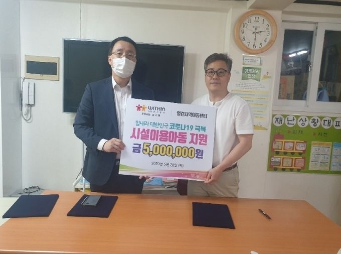 (사)위드인사람과함께에서 진행 중인 위기극복사업 “시설아동지원사업”은 취약계층을 돌보고 있는 각 지역 시설들과 취약계층아동들을 돕기 위한 릴레이 운동은 앞으로도 계속 이어나갈 예정이다.