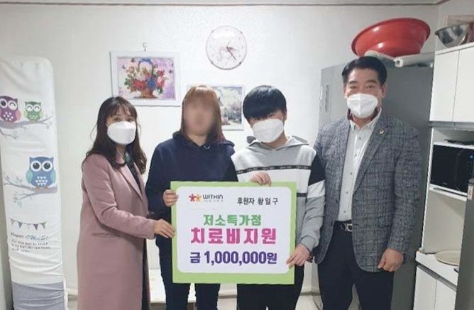 [경기경제신문] (사)위드인사람과함께(이하‘위드인’)는 지난 27일 백혈병 치료를 받고 있는 성남시 수정구의 한 가정에 치료비와 생활비 지원을 위해 100만원을 전달했다.