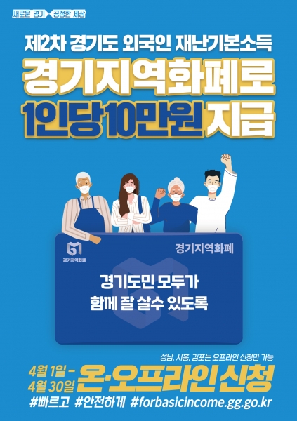김규식 노동국장은 “경기지역화폐를 미리 신청하고 등록해 놓으면 외국인분들도 주민센터 방문 없이 경기도 재난기본소득을 온라인으로 간편하게 신청할 수 있다”며 “코로나19 감염 위험도 없고 줄서기도 없는 온라인 신청을 당부 드린다”고 말했다.