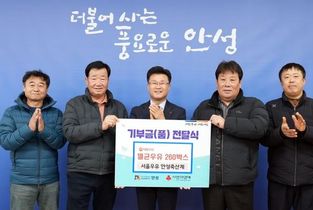 [경기경제신문] 안성시는 지난 12월 29일, 서울우유 안성축산계와 ㈜스마트에스지가 연말을 맞아 어려운 이웃을 위한 나눔을 실천했다고 밝혔다. 서울우유 안성축산계는 멸균우유 260박스(24개입 200ml, 기부가액 400만 원 상당)를 기부했다. 이번 기부는 회원 회비를 통해 마련된 것으로, 지역사회와의 상생을 실천하자는 조합원들의 뜻이 반영된 것이다. 서울우유 안성축산계는 영농조합법인으로 우유 공동출하, 개량사업, 영농자재 생산·공급 등 낙농업 발전을 위한 다양한 사업을 추진하고 있다. 평소에도 안성시장학회 후원 등 지역사회 환원 활동을 꾸준히 이어오고 있다. 같은 날, ㈜스마트에스지는 취약계층을 위한 성금으로 500만 원을 기탁하며 따뜻한 나눔 행렬에 동참했다. 이번 기부는 기업의 성장 이익을 지역사회와 나누고, 특히 경제적으로 어려움을 겪는 이웃들에게 실질적인 도움을 전하고자 마련됐다. 이번에 접수된 기부금품은 경기사회복지공동모금회를 통해 안성시 내 취약계층 및 복지 사각지대에 놓인 이웃들을 위해 사용될 예정이다. 시 관계자는 “여러분들의 따뜻한 나눔이 추운 겨울 어려운 이웃들에게 큰 힘이 되고, 설 수 있는 원동력이 될 것”이라며 “안성시는 소중한 정