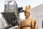 [경기경제신문] 수원특례시가 봄을 맞아 6일 팔달산에 있는 정조대왕 동상을 세척하고, 주변 환경을 정비했다. 정조대왕 동상에 겨우내 쌓인 먼지와 오염물질을 고압세척기로 제거하고, 산화된 부분도 깨끗하게 정비했다. 물과 중성세제를 혼합한 세척액을 사용해 동상 표면을 청소하고, 부드러운 천으로 닦아 먼지와 녹을 말끔하게 제거했다. 동상 주변 환경정비도 진행했다. 시민과 관광객들이 쾌적한 환경에서 정조대왕 동상을 관람할 수 있도록 주변 시설물과 관람 공간을 정리했다. 정조대왕 동상은 팔달산을 대표하는 상징물로, 많은 시민과 관광객이 찾는 수원의 주요 역사·문화 자원이다. 수원시는 정조대왕 동상을 정기적으로 점검하고, 관리하고 있다. 수원시 화성사업소 관계자는 “정조대왕 동상은 많은 시민과 방문객이 찾는 팔달산의 주요 시설물인 만큼 체계적으로 유지관리를 하고 있다”며 “정기적인 점검과 정비로 쾌적한 환경을 유지해 나가겠다”고 말했다.
