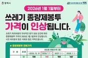 [경기경제신문] 평택시는 2026년 1월 1일부터 쓰레기 종량제 봉투 가격을 3개년도에 걸쳐 인상한다. 그동안 평택시는 인구증가, 물가상승, 생활 쓰레기 수집 운반 처리비용 증가에도 불구하고 2006년 이후 종량제봉투 가격을 동결해 왔다. 시 관계자는 “현재 평택시의 종량제 가격은 경기도 31개 시군 가운데 최하위 수준이며, 청소예산 재정자립도와 주민부담률이 낮아 가격 인상은 불가피하다”고 밝혔다. 따라서, 대표적으로 일반용 종량제봉투 20리터는 현재 500원에서 110원 인상된 610원으로, 음식물 전용 봉투 1.5리터는 현재 40원에서 20원이 인상된 60원으로, 공동주택에 설치된 음식물종량제기기(RFID)는 1㎏ 단위로 현재 48원에서 12원 인상된 60원으로, 경기도 내 31개 시군 평균 가격을 반영하여 인상안을 마련했다. 다만, 서민경제의 어려움과 시민부담을 고려하여 가격 인상은 3개년도에 걸쳐 단계적으로 시행할 예정으로, 시 관계자는 “종량제봉투 가격 인상에 대한 시민 여러분의 많은 이해와 협조를 부탁드린다”며 “앞으로도 쾌적하고 청결한 도시환경 조성은 물론 질 높은 청소행정 서비스 제공에 최선을 다하겠다”라고 밝혔다.