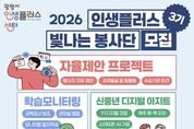 [경기경제신문] 광명시 인생플러스센터가 ‘2026년 인생플러스 빛나는 봉사단’ 제3기 봉사자 40명을 2월 23일부터 3월 11일까지 모집한다. ‘인생플러스 빛나는 봉사단’은 40~64세 광명시 중장년이 지닌 지식과 역량을 평생학습 자원으로 확장해 지역공동체에 필요한 변화를 함께 만들어가는 ‘재능활용 학습실천’ 자원봉사 활동이다. 지난 1‧2기 활동에는 총 50명의 봉사자가 참여해 ▲아동 학습보조 및 책놀이 ▲1:1 디지털 코칭 ‘신중년 디지털 아지트’ ▲어르신 아로마 향기테라피 ▲중장년 드론 조종 체험 등 다양한 활동을 펼쳤다. 이들은 총 413회, 누적 1천358시간에 걸친 봉사활동으로 지역사회에 활력을 불어넣었다는 평가를 받았다. 이번 3기 모집 분야는 크게 현장지원형(10명)과 프로젝트형(30명)으로 나뉜다. 현장지원형은 센터 프로그램 운영과 행사 안내를 돕는 ‘인생플러스 서포터즈’와 교육강사 보조 및 모니터링 일지를 작성하는 ‘학습 모니터링’으로 운영한다. 프로젝트형은 ‘신중년 디지털 아지트(1:1 코칭)’, ‘초등학생 책 낭독놀이’를 비롯해 봉사자가 직접 프로그램을 기획해 관내 수요기관에 파견되는 ‘기타 자율제안 프로젝트’로 구성된다. 특히 시는