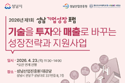 [경기경제신문] 성남산업진흥원은 4월 23일 11시 30분부터 성남산업진흥원 대강당에서 '2026년 제1회 성남기업성장포럼'을 개최한다. 이번 행사는 기술 기반 투자유치와 중동사태 대응 방안을 중심으로 성남 기업의 매출 성장과 글로벌 진출을 모색한다. 포럼 주제는 '기술을 투자와 매출로 바꾸는 성장전략과 지원사업'이며, 기업 임직원 150여 명이 참석해 투자 유치 성공 사례와 중동 위기 이후 이란 시장 기회를 논의하게 된다. 첫 번째 세션은 고영하 고벤처포럼 회장(前 한국엔젤투자협회 회장)이 ‘기술은 있는데 투자&매출이 안되는 이유’를 분석하며, 성남 기술기업의 실질적 투자유치 방안과 지원 정책을 발표한다. 두 번째 세션인 중동사태 대응 세션에서는 한국외국어대학교 중동연구소 백승훈 교수가 중동 위기 이후 이란 진출 기회를 조명한다. 시시각각 변하는 중동 정세 속에서 이란 산업경제·소비자 동향을 분석하고, 성남기업의 이란 시장 진출 실행 전략을 제시한다. 세 번째 세션은 기술 기반 투자유치 성공사례 발표로, 첨단의료기 기업 브레인유 홍승균 대표가 뇌파 기반 마취 심도 측정기기 ‘CIA’ 개발과 CES 2025 혁신상 수상 경험을 공유하고 기술 중심 기업