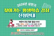 [경기경제신문] 안성시는 시민이 원하는 시간과 장소에서 희망하는 강좌를 수강할 수 있는 '2026년 상반기 찾아가는 평생학습 강좌'를 운영한다고 밝혔다. ‘찾아가는 평생학습 강좌’는 10명 이상의 시민이 학습동아리를 만들어 강좌를 신청하면, 강사가 직접 현장을 방문하여 교육을 진행하는 수요자 중심의 평생학습 프로그램이다. 신청 가능한 강좌 분야는 인문교양, 문화예술, 직업능력 등 다양하며, 다만 평생학습장터, 주민자치센터, 보건소, 경로당, 농업기술센터 등 타 부서에서 지원받는 동일·유사 프로그램은 중복 신청할 수 없다. 학습동아리는 강좌당 최대 24시간 범위 내에서 운영할 수 있으며, 강사비는 안성시에서 지원하고 재료비 등은 학습자가 부담한다. 신청기간은 4월 2일부터 4월 9일까지이며, 총 15개 강좌를 선착순으로 접수한다. 신청 대상은 안성시에 주소를 둔 10명 이상의 학습동아리이다. 신청은 안성배움e 홈페이지를 통해 온라인으로 가능하며, 안성배움e 홈페이지 → 평생교육사업 → 찾아가는 평생학습 강좌 → 평생학습 강좌 운영방법 → 신청서 다운로드 및 작성 → 신청서 업로드 순으로 진행하면 된다. 안성시 관계자는 “찾아가는 평생학습 강좌를 통해 시민들이